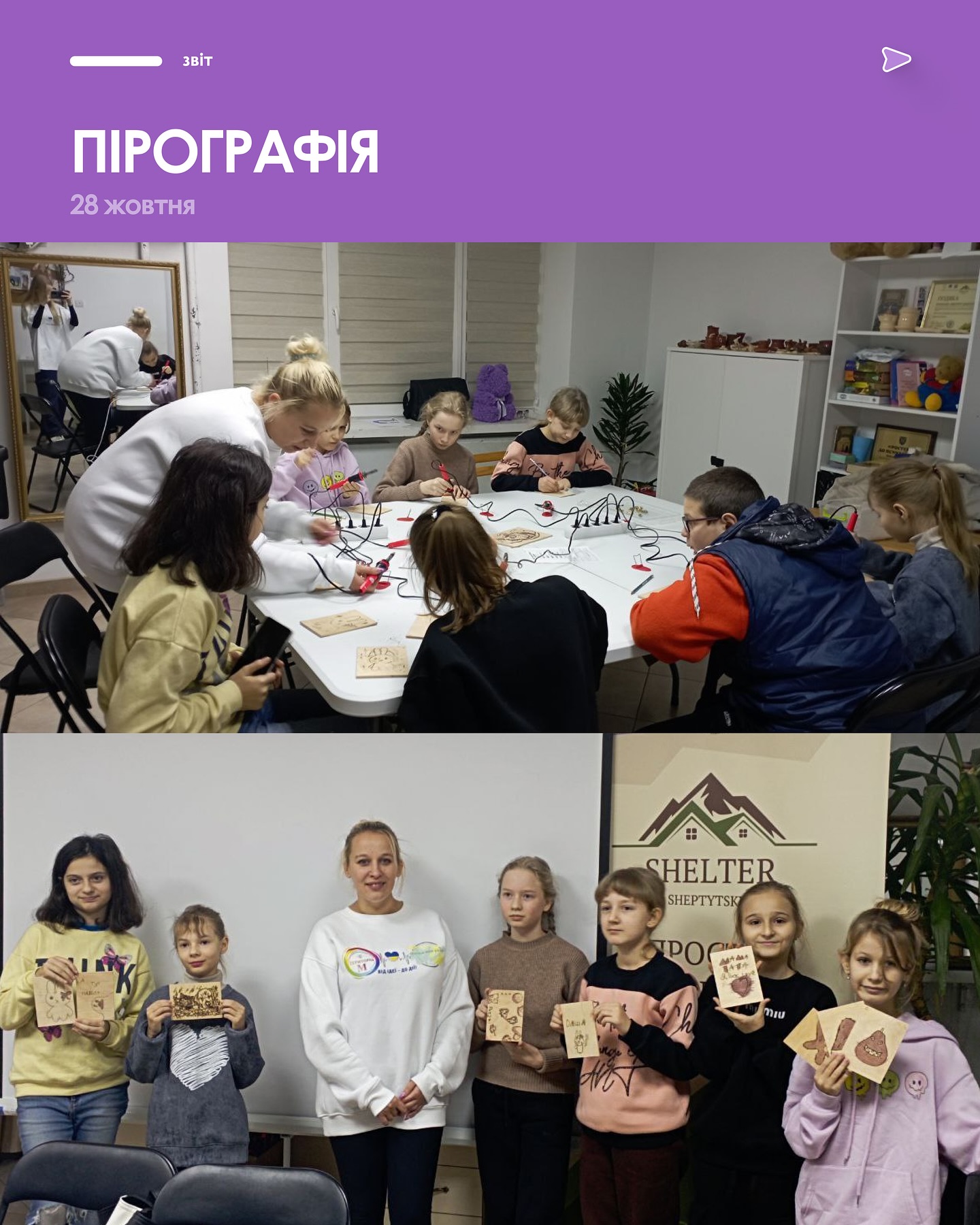 У «Шелтер Шептицький» діти відвідували школу розвитку, заняття з вільної боротьби, танців і йоги, створювали малюнки випалюванням у техніці пірографії та конструювали з LEGO. Протягом тижня також проходили арт- і казкотерапія, групові консультації з психологом, студія штучного інтелекту, кінопоказ, зумба та денна мандрівка.