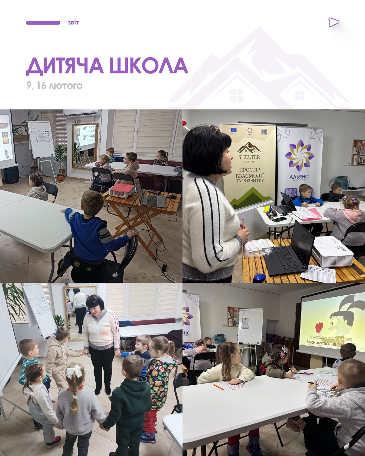 Протягом двох тижнів у «Шелтер Шептицький» відбувалися заняття дитячої школи, арттерапія та казкотерапія. Регулярно проходили сучасні танці, вільна боротьба, зумба та спортивний турнір, а також заняття з лего. Учасники долучалися до студії ШІ, кінопоказів і настільних ігор. Відбулися групові консультації психолога та зустрічі в межах Форуму ВПО. Окремо провели заняття з писанкарства, а неділі традиційно стали часом розваг для дітей.