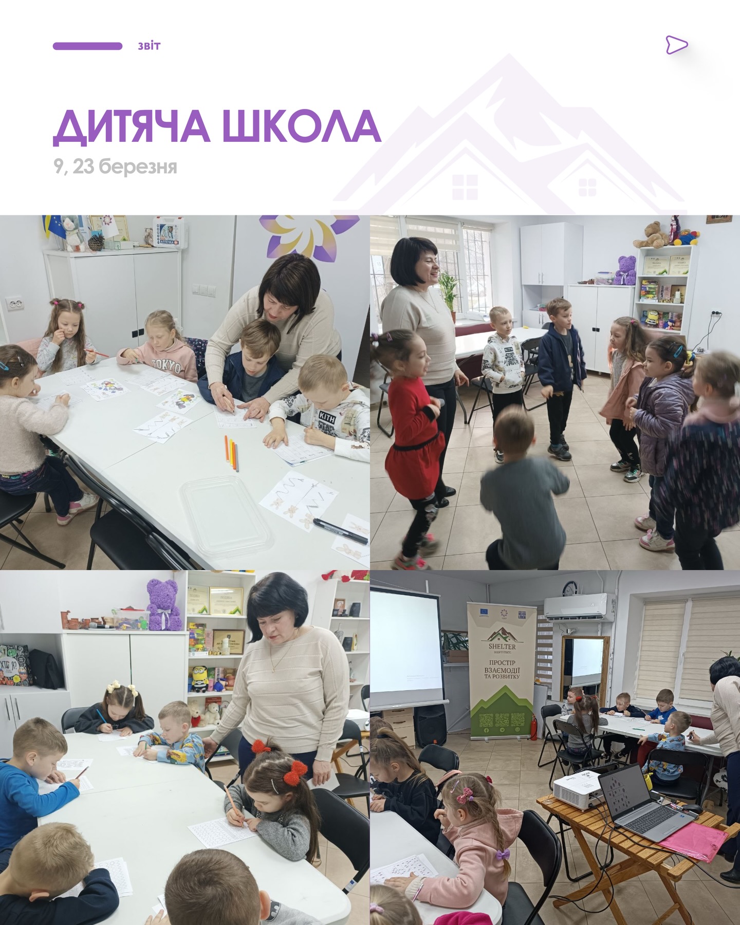 У «Шелтер Шептицький» відбувалися заняття дитячої школи, арттерапія та студія ШІ. Регулярно проходили тренування із зумби, сучасних танців, вільної боротьби та йоги, а також заняття «Азбука здоров’я» і лідерський курс. Учасники долучалися до консультацій психолога, занять з лего, настільних ігор і кінопоказів. Відбулися спортивний турнір, майстер-клас і Форум ВПО. Окремо провели заняття з писанкарства та родинні зустрічі, а неділі традиційно стали часом розваг.